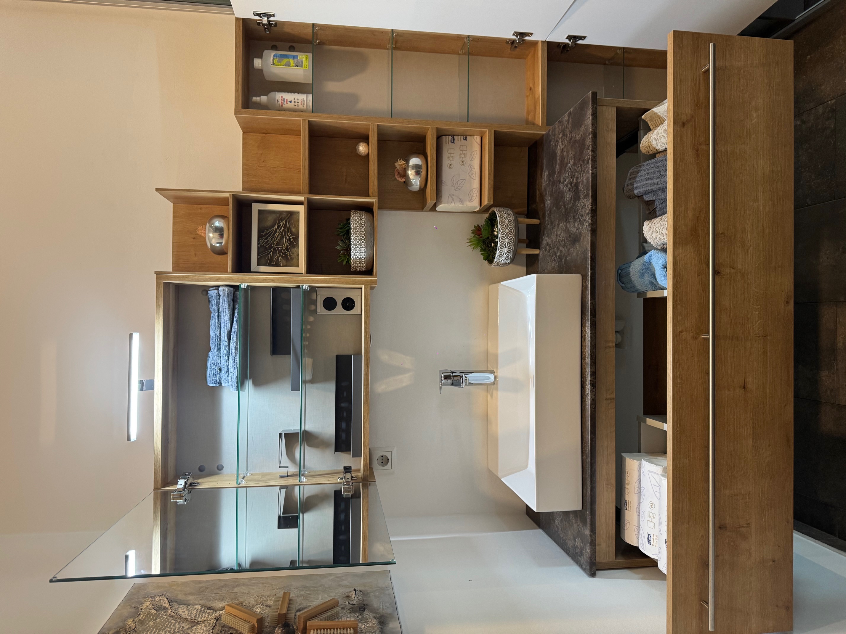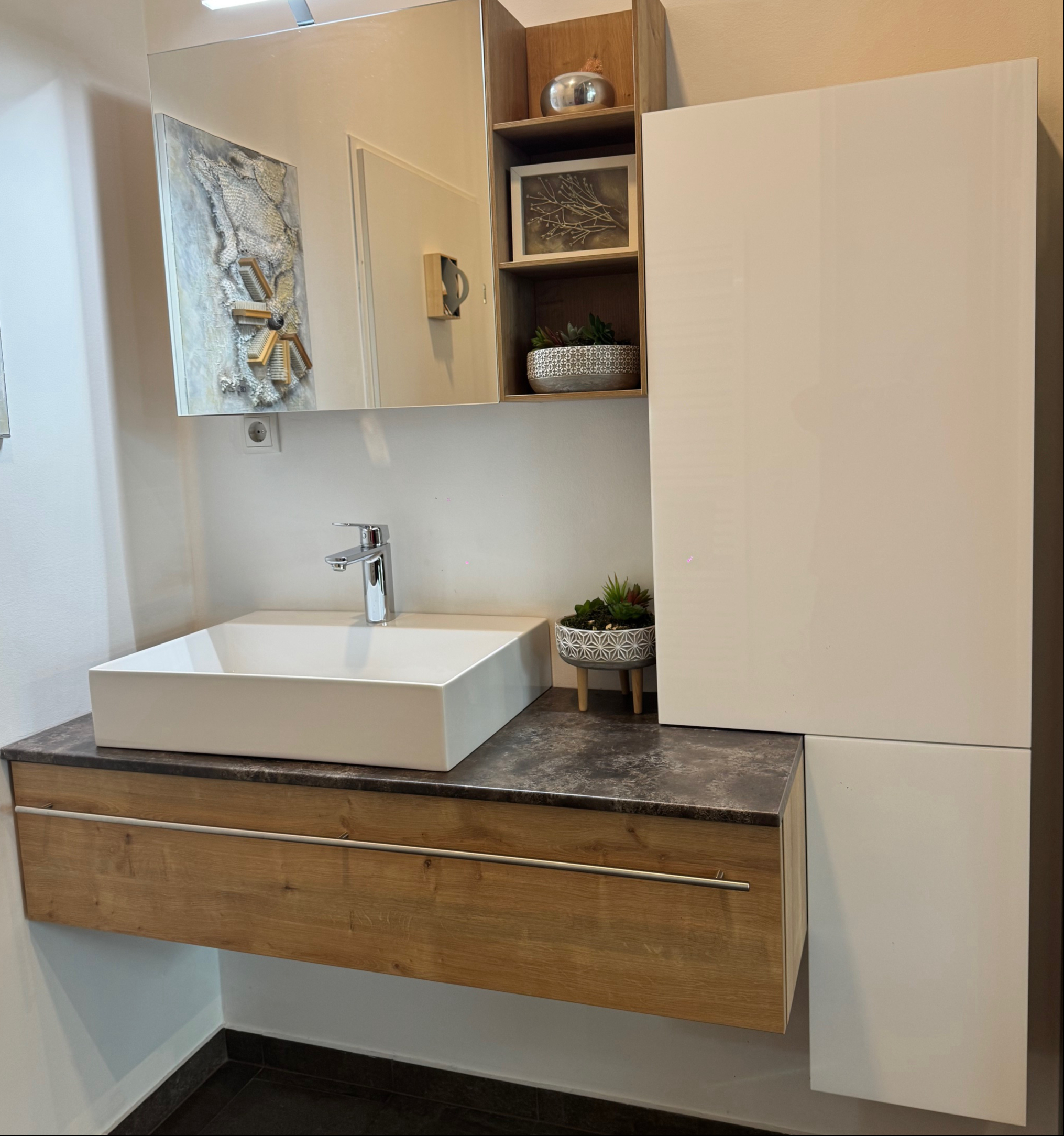 Schalter- Steckdosenelement im Spiegelkasten.